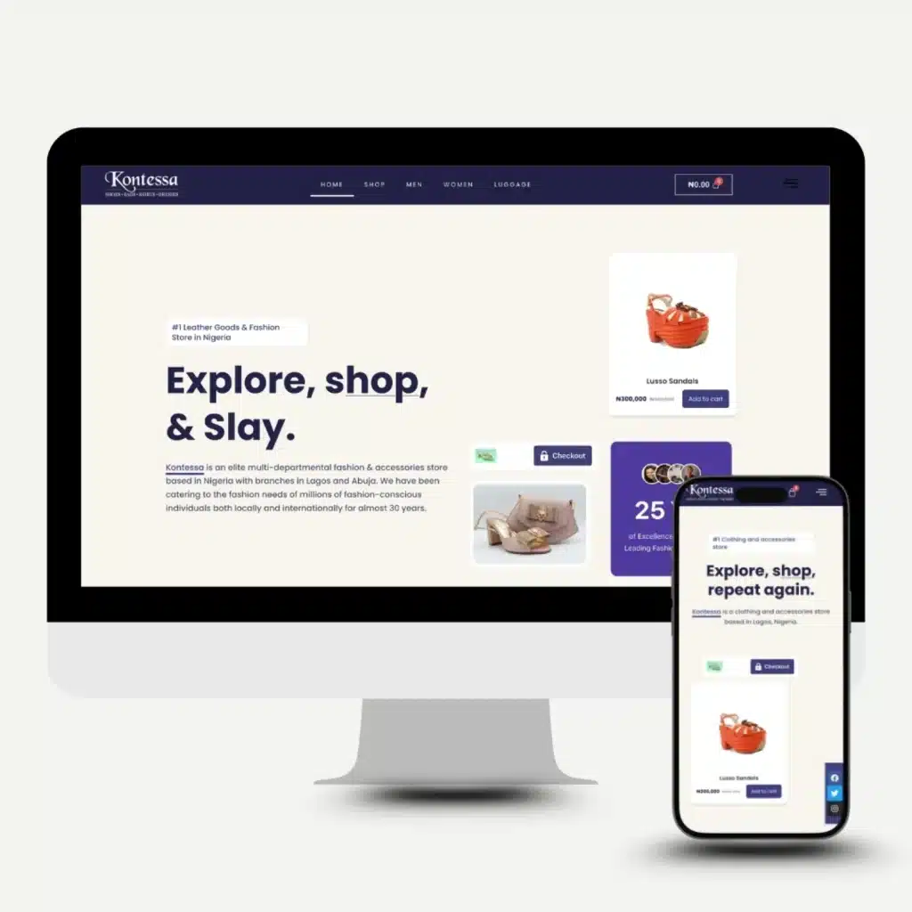 For Kontessa LTD, a premium fashion and accessories brand in Nigeria, we built a sleek, mobile-optimized eCommerce website using WordPress, WooCommerce, HTML, CSS, and JS. The goal was to create an intuitive shopping experience that feels both high-end and user-friendly, and that’s exactly what we delivered.